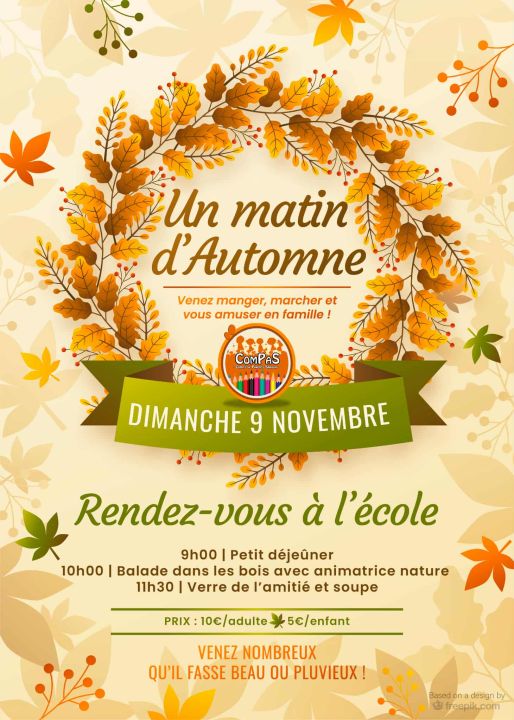 Il est encore temps de vous inscrire à l'activité organisée par le ComPaS " Un matin d'automne" (dimanche 9 novembre) par téléphone au 0486686339 😉