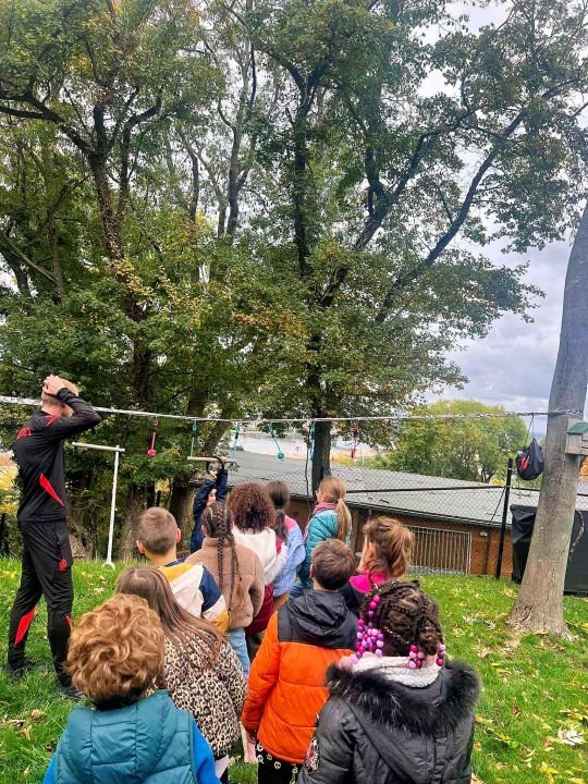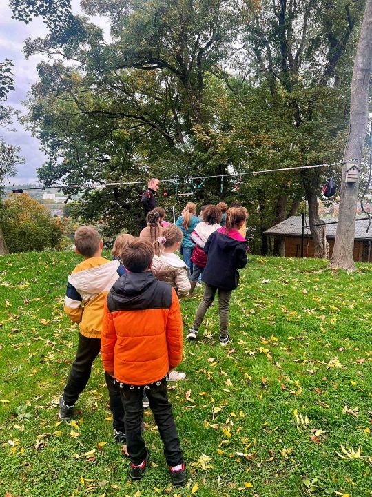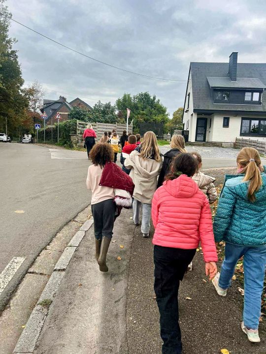 Cet après-midi, les élèves de P3 et de P4 ont profité d’une petite balade d’automne. Ils ont chaleureusement été accueillis chez Madame Muller, où ils ont rendu visite aux animaux et découvert son magnifique jardin. Ils ont également dégusté de délicieuses châtaignes grillées. Un immense merci à Madame Muller pour son hospitalité, les enfants ont adoré.